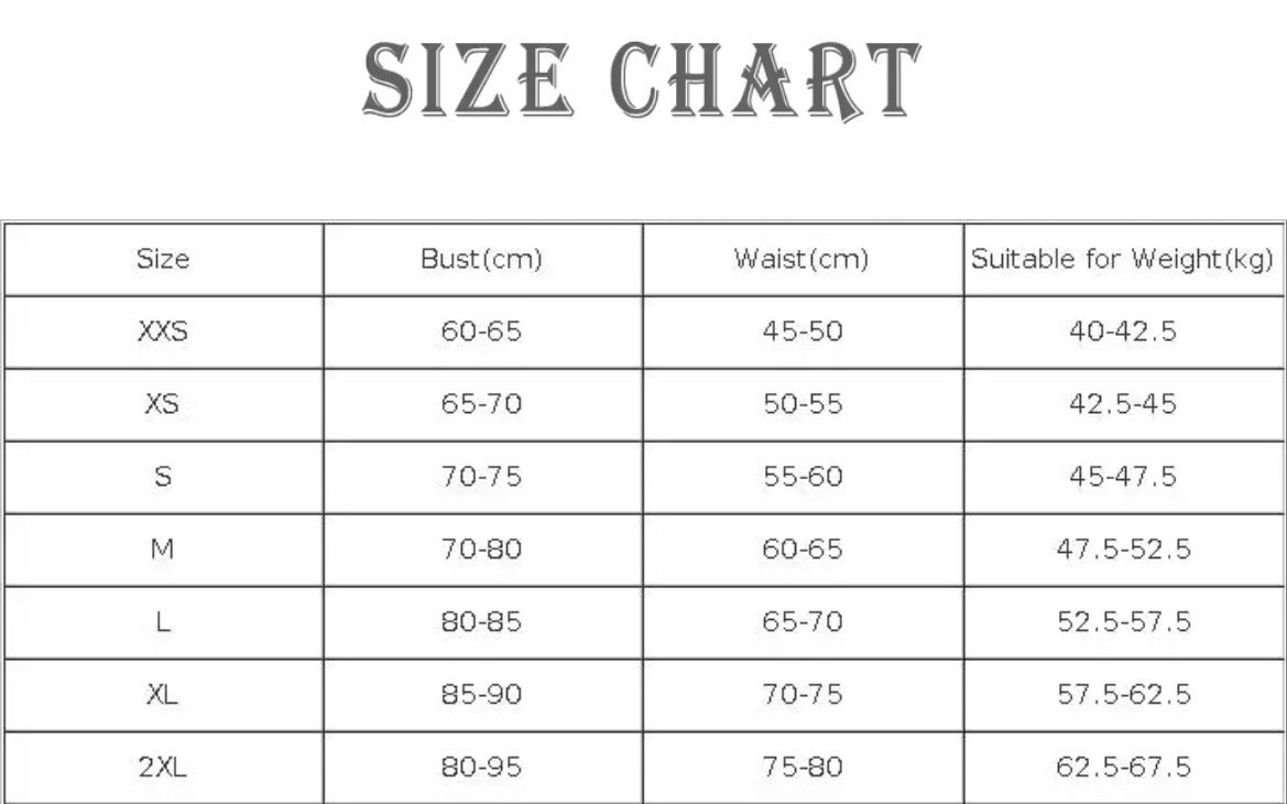 Size chart in images (last slide)