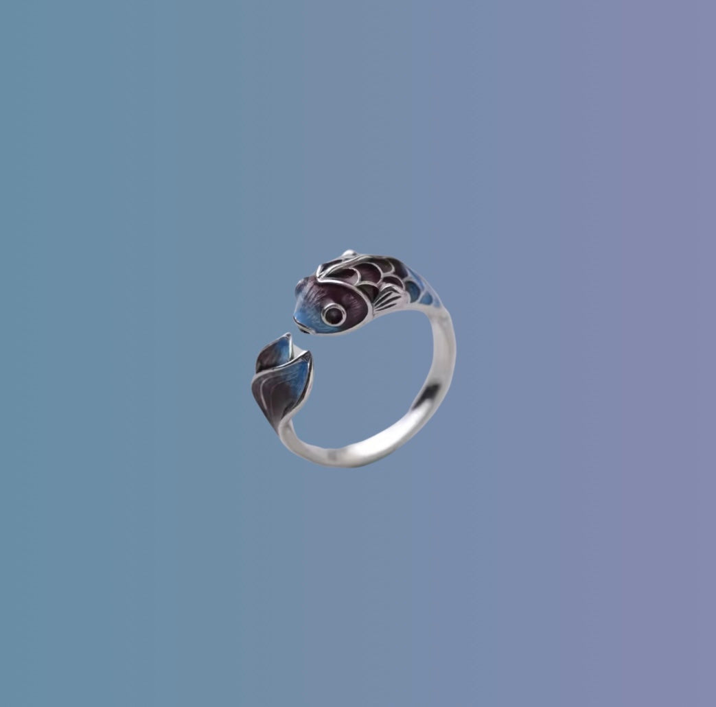 A koi circling your finger is the perfect addition to your Koi cardigan. It's as if you're carrying a piece of nature's beauty with you wherever you go…