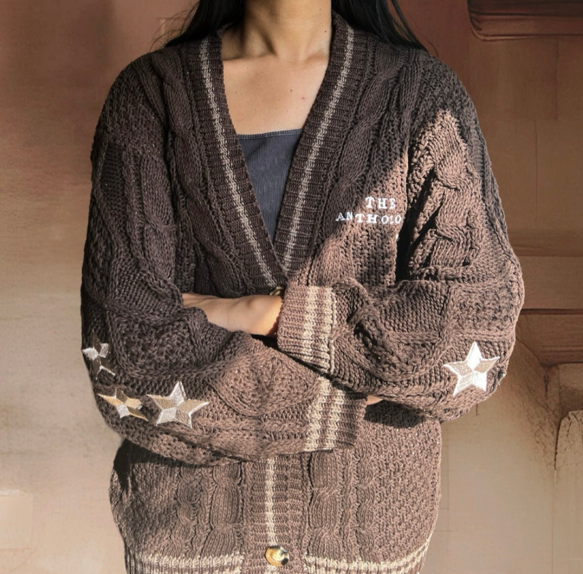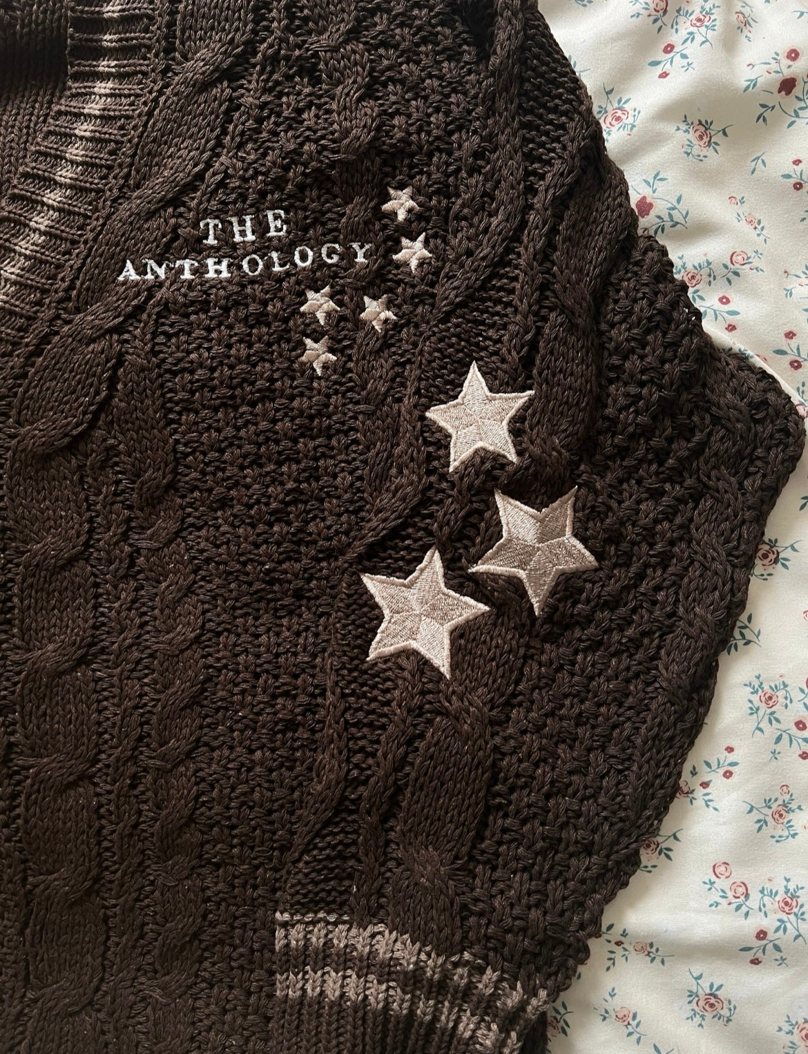 The Limited Edition The Anthology Cardigan with embroidered star patches that give a subtle nod to the OG cardigan made for Tortured Poets to wrap up in. Available for a limited time only.