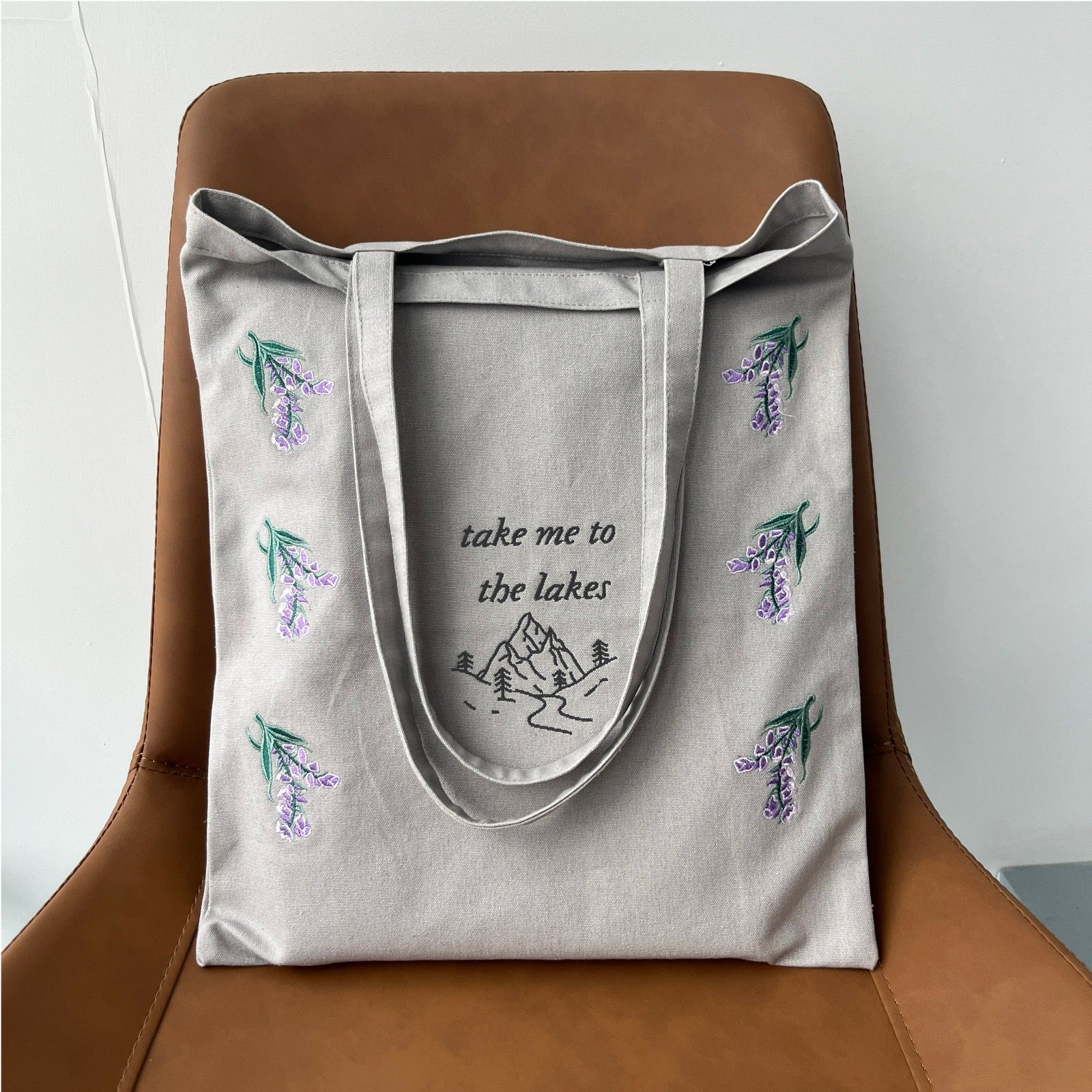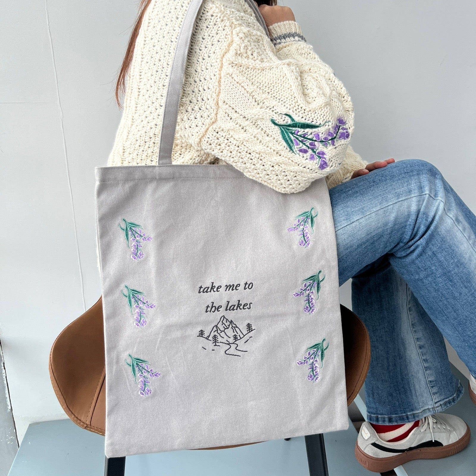 Inspired by The Lakes track, this gorgeous tote is complete embroidered wisteria and an inner pocket. Made to pair with The Lakes Cardigan.